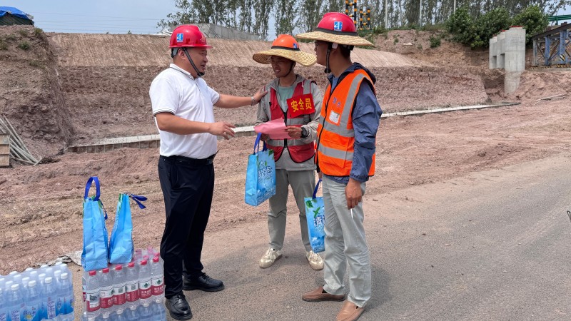烈日炎炎,暑氣蒸騰。為切實關懷高溫下堅守崗位的一線建設者,近日,安徽交建黨委、工會、組織運營中心組織開展“戰高溫保生產”慰問活動,帶著胡先寬董事長和吳小輝總裁的囑托與公司的清涼關懷,奔赴各個在建項目施工現場,為奮戰在一線的作業人員、管理人員及后勤保障人員送去夏日“清涼”與暖心問候。
