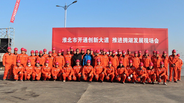 2017年12月14日,迎著冬日和煦的陽光,淮北市召開了“開通創新大道,推進擁湖發展”現場會。市委書記黃曉武、市委副書記、市長戴啟遠、市委副書記、常務副市長李明,市委常委、市委政法委書記錢界殊,安徽交建總裁高楊等重要領導一同出席。