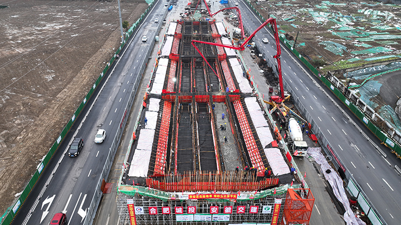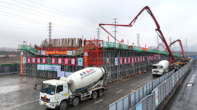 2月10日下午2點34分,安徽交建承建的宿松路快速化改造工程2標段主線橋首聯現澆箱梁順利完成澆筑任務,標志著我標段正式進入橋梁上部結構施工階段。當日晚6點繁華大道與宿松路交口二次導改工作順利完成。新一年工程建設大干快上的沖鋒號就此吹響。