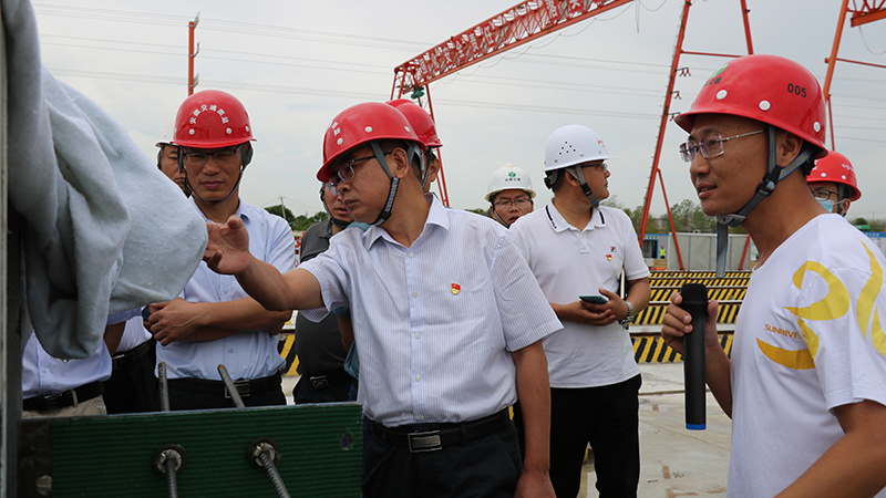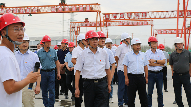 儀式前,預制標項目副經理李思南向參會人員詳細匯報了項目場地規劃及構件預制生產過程中采用的多項新工藝和取得的成果,并引導與會人員現場觀摩安全體驗區、鋼筋加工區、廂拱涵生產區、T梁生產區等作業區域,并獲得相關單位領導的充分肯定和高度評價。