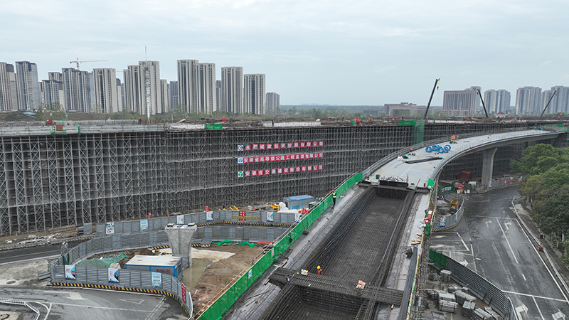 宿松路(南二環(huán)~深圳路)快速化改造工程7標(biāo)段全長4.35公里,其中高架橋段北起紫石路,上跨云谷路、始信路、云海路、珠江路,經(jīng)龍灣路連接地面系統(tǒng),長2.25公里。項(xiàng)目自7月21日封閉施工開始至主線箱梁混凝土澆筑結(jié)束,累計(jì)綁扎鋼材2.2萬噸,澆筑混凝土12萬立方米,完成產(chǎn)值近4.8億元。