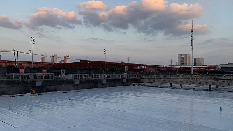 宿松路快速化改造工程地處城市建成區(qū),周邊環(huán)境復(fù)雜,施工面臨地下管網(wǎng)縱橫交錯、基坑開挖深度大、結(jié)構(gòu)防裂、防水要求高等難題。面對復(fù)雜而苛刻的條件,安徽交建項(xiàng)目部實(shí)現(xiàn)了多項(xiàng)行業(yè)“首創(chuàng)”:針對市政干作業(yè)基坑圍護(hù)樁垂直度控制不佳,我部采購2臺RSM-HGT(D)型超聲波成孔質(zhì)量檢測儀對樁基垂直進(jìn)行檢測、及時(shí)糾偏;施工過程中使用全站儀對旋挖鉆機(jī)桅桿垂直度進(jìn)行檢查、糾偏;為有效控制地道側(cè)墻混凝土裂縫,選擇摻加ART-MPC無機(jī)納米抗裂密實(shí)劑,提高混凝土抗裂性。養(yǎng)護(hù)采用水能量節(jié)水保濕養(yǎng)護(hù)膜,將液態(tài)水轉(zhuǎn)化為固態(tài)水,通過毛細(xì)管作用,源源不斷的向養(yǎng)護(hù)面滲透,同時(shí)吸收砼水化熱過程中蒸發(fā)水,在一個養(yǎng)護(hù)周期內(nèi)保證養(yǎng)護(hù)體表面保持濕潤,相對濕度≥90%;為避免變形縫滲水情況,施工過程中增設(shè)一道中埋式止水帶。同時(shí)針對止水帶安裝及焊接等薄弱環(huán)節(jié)加強(qiáng)控制,安排固定人員培訓(xùn),舉辦焊接比賽,提升焊接技術(shù)。