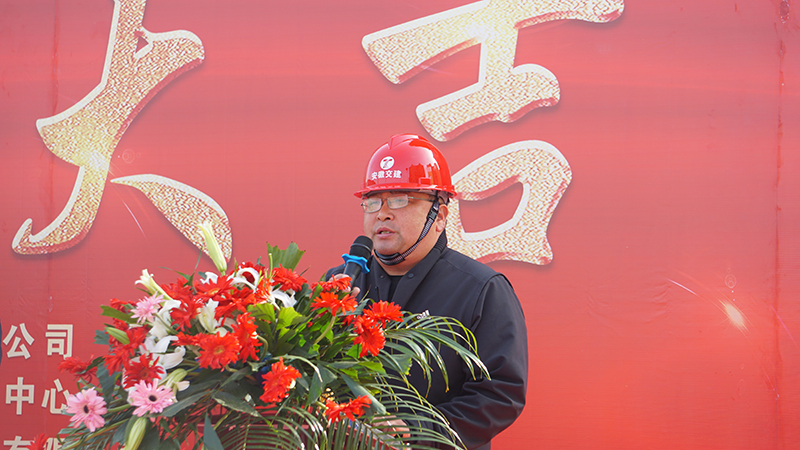 儀式上,鳳臺縣重點工程建設服務中心主任李曉輝在致辭中對安八二期項目13#樓封頂表示熱烈祝賀,向日夜奮戰在建設一線的全體建設者們致以崇高的敬意和真摯的問候,并希望在后續的建設中,全體人員一如既往強化安全管理,嚴把質量關,加快施工進度,確保工程如期完成。