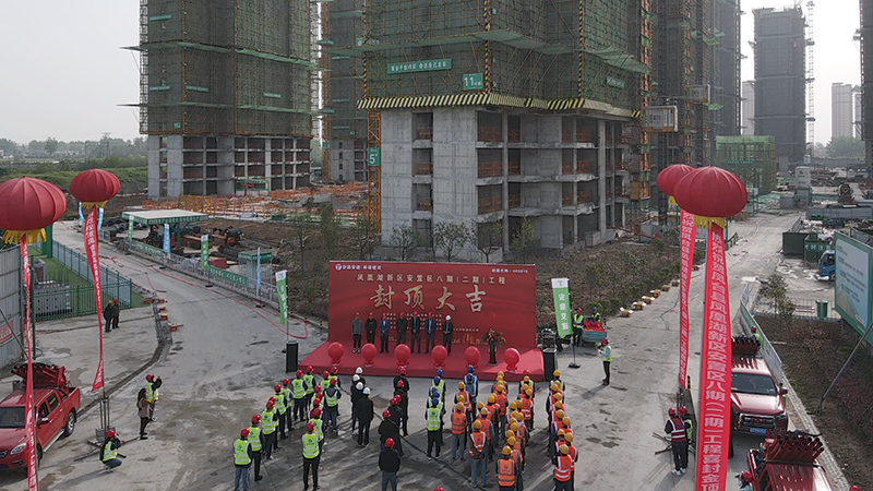 活動現場,彩旗飄揚,所有人臉上洋溢著喜悅的笑容。從一紙藍圖到一棟棟高樓,歷經了無數日夜的精細打磨,鳳臺縣安八二期工程項目全員不負期盼和等待,率先迎來了13#樓封頂。