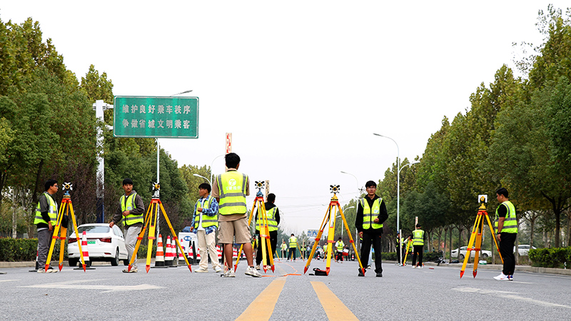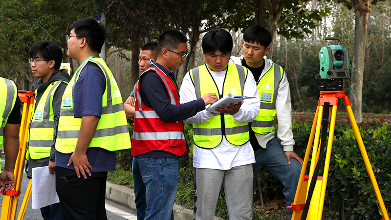 次日上午,在安徽交建大連路項目竣工封閉路段,學員早已準備充分、躍躍欲試。在“全站儀對點賽”和“水準+導線”技能競賽,導師互換小組以裁判的身份進行全程跟蹤,依據各組完成時間、操作規范性、測量結果以及第一天的理論成績綜合評判最終結果。