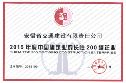 全國建筑業企業創新發展經驗交流會在廣西南寧召開,大會上對獲得2015年度中國建筑業成長性200強的企業進行了表彰并頒獎。安徽省交通建設股份有限公司(以下簡稱安徽...