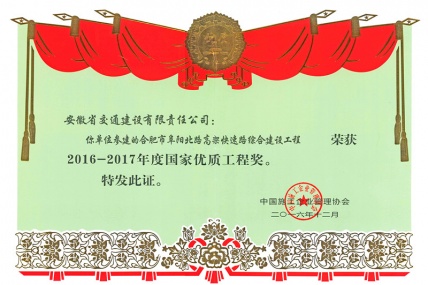 安徽省交通建設股份有限公司(以下簡稱安徽交建)承建的阜陽北路高架工程三標段獲“2016-2017年度國家優質工程獎”,安徽交建負責本項目的項目經理儲根法被授予“...