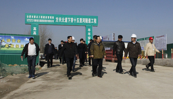 11月25日上午,安徽省委常委、合肥市委書記宋國(guó)權(quán),市長(zhǎng)凌云深入建設(shè)一線,實(shí)地調(diào)研了安徽交建承建的十五里河濕地工程和方興大道下穿十五里河隧道工程項(xiàng)目.宋書記、凌市長(zhǎng)一行到達(dá)方興大道項(xiàng)目駐地后,首先詳細(xì)了解了項(xiàng)目承建單位—安徽省交通建設(shè)股份有限公司的詳細(xì)情況;聽取了該項(xiàng)目建設(shè)的總體規(guī)劃、實(shí)施進(jìn)展、生態(tài)文明建設(shè)等重點(diǎn)工作的匯報(bào)。宋書記高興地指出,安徽交建作為合肥市大建設(shè)的先頭軍、排頭兵要有使命意識(shí)、責(zé)任擔(dān)當(dāng),工程建設(shè)過程中要注重生態(tài)環(huán)境保護(hù),牢固樹立和踐行生態(tài)文明觀、科學(xué)發(fā)展觀。