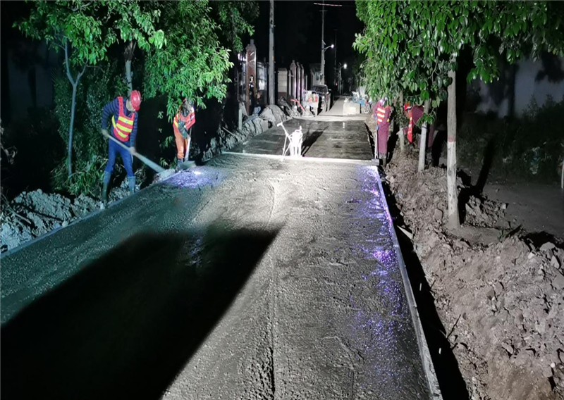 凌晨時分,城市的萬千燈火漸弱,界首農村公路項目工地上卻燈火通明,挖掘機、灰土拌合機、混凝土拌合站轟鳴聲此起彼伏,工程運輸車來回穿梭,一片忙碌的景象。