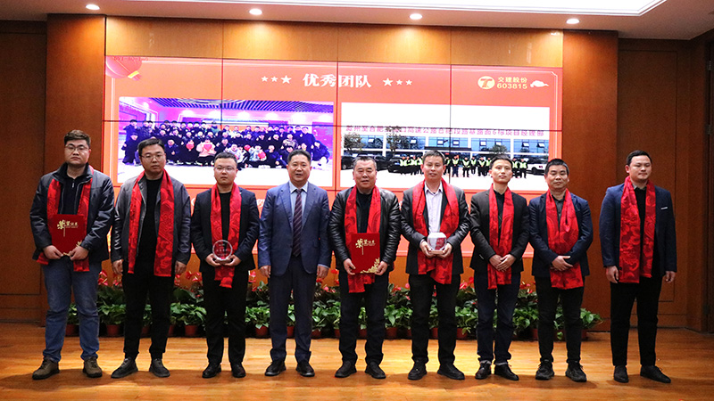 2023年公司全員凝心聚力,臨難不卻,取得了較為不易的成績,也涌現出了一批敬業篤行、奮輯勇進的先進榜樣。公司董事會秘書曹振明宣讀了2023年度公司優秀表彰文件,隨后舉行了隆重的頒獎儀式,為受表彰的個人和集體頒發獎杯、證書及獎金。大會號召公司全員要以先進為榜樣,心系發展,愛崗敬業,同心共贏,再創佳績!
