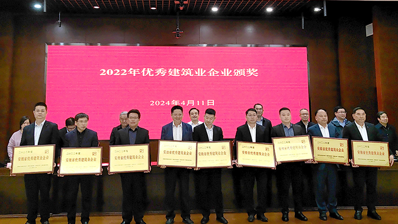 會議傳達學習了全國住房城鄉建設工作會議、全省創建一流營商環境暨推進民營經濟高質量發展大會有關精神,分析研判安徽省建筑業發展形勢和應對策略,并通報表彰了“2022年度安徽省優秀建筑業企業”、“2022年度安徽省建筑業龍頭骨干企業”。會議現場傳來喜訊,安徽交建獲評“安徽省優秀建筑業企業(綜合基礎設施總承包類)”、“安徽省建筑業龍頭企業”榮譽,常務副總裁兼總工程師儲根法參會并上臺領獎。