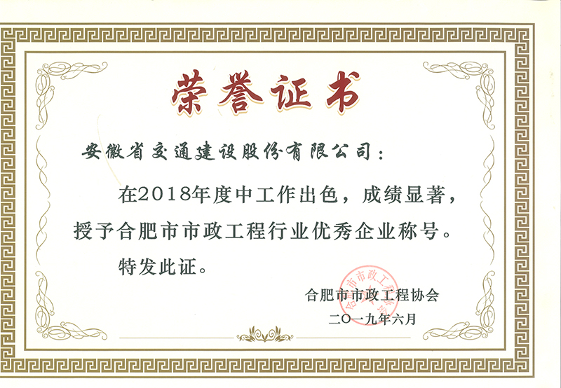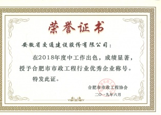 合肥市市政工程行業優秀企業稱號