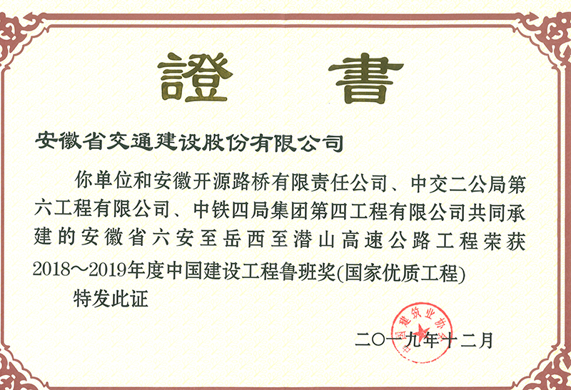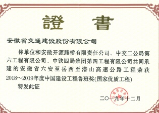 2018~2019年度中國建設工程魯班獎(國家優質工程)