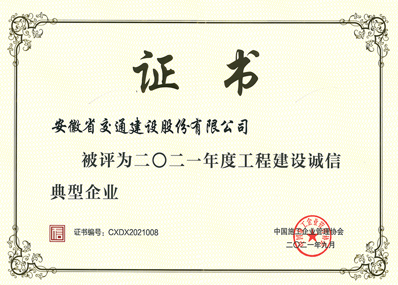 2021年度工程建設誠信典型企業